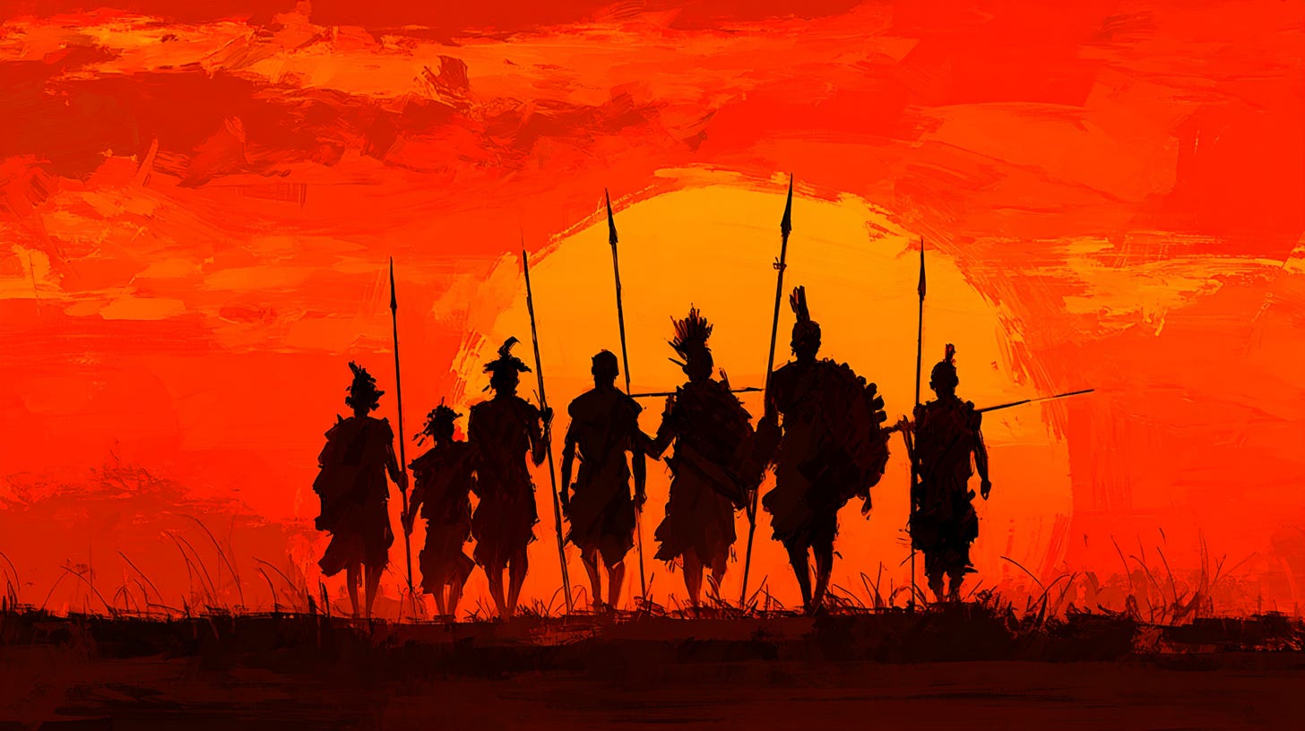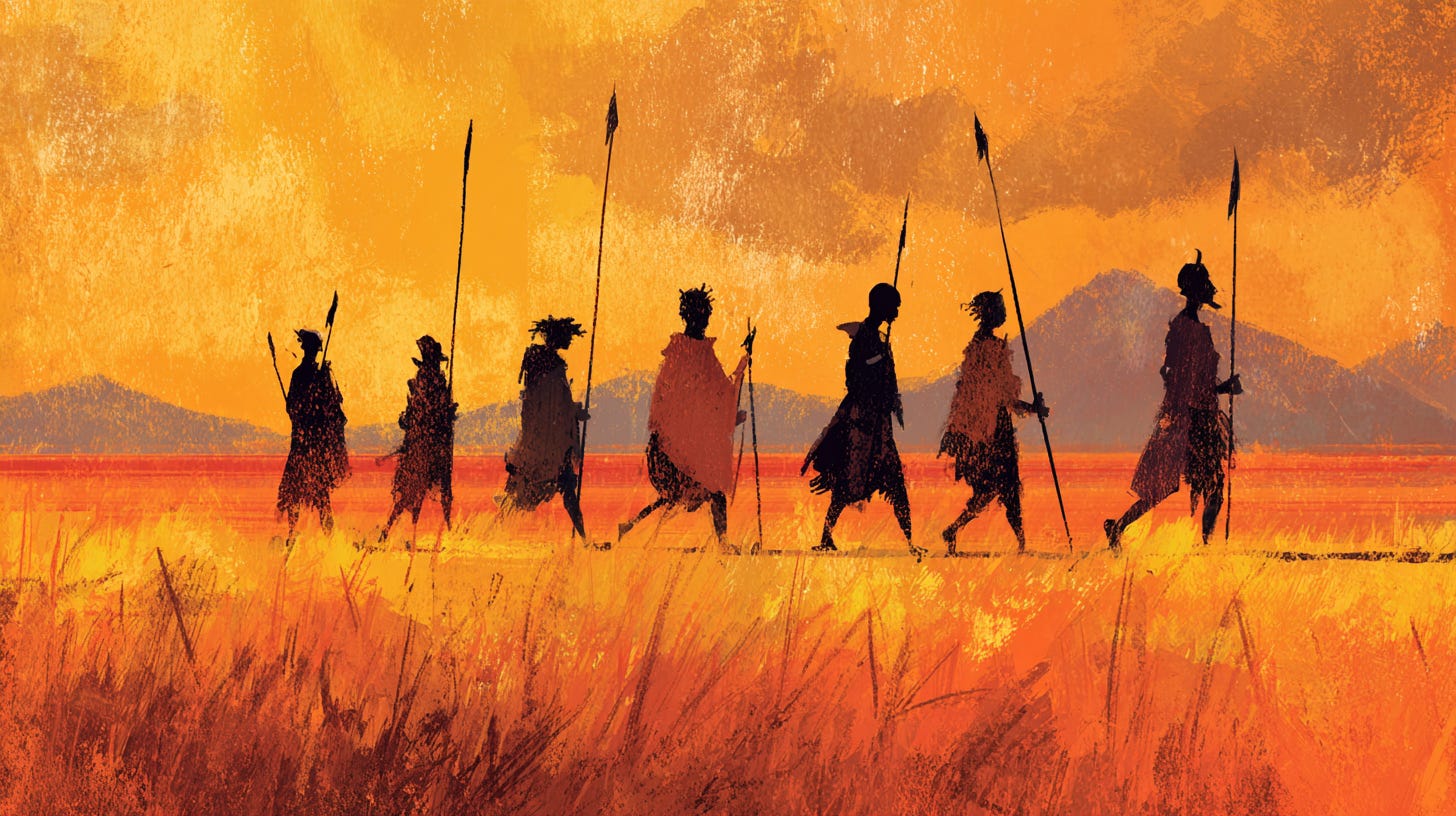 Hasta que, un día, los guerreros más fuertes de las siete tribus de la sabana hicieron algo que nunca se había hecho: abandonaron sus rivalidades, sus orgullos, sus nombres... y se unieron.