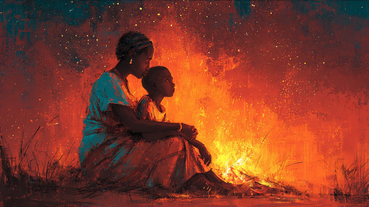 Muchos años después, cuando Jelani ya tenía nietos, seguía contando historias junto al fuego. Como hacía su madre.