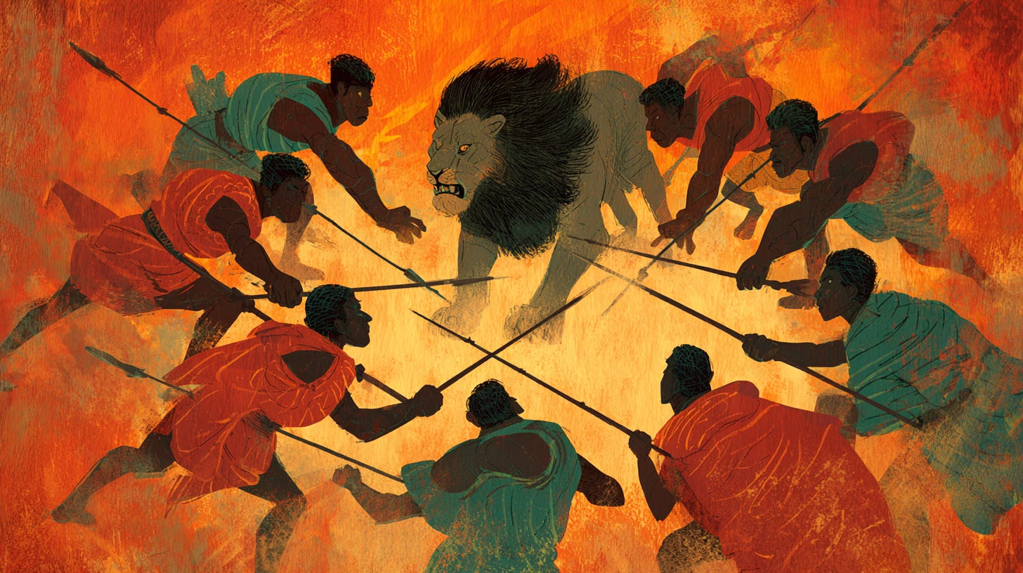 —Teníamos rodeado al león. Éramos cinco. Lo teníamos. Solo había que esperar, mantener el círculo, y atacar juntos.